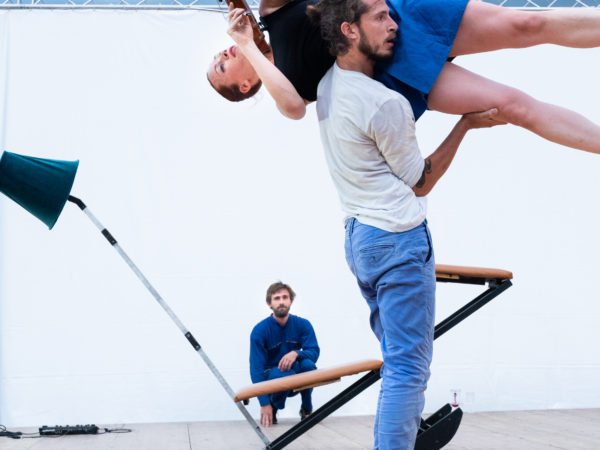 Comment fait-on pour rebondir ? Quand on rate, quand on tombe, quand on échoue ? Deux musiciens aux instruments à cordes et deux danseurs aux corps acrobates font face à un immense et immuable cube. Ils s’y agrippent et tombent, s’obstinent et tentent, autrement. L’imprévu est-il une impasse ou une bifurcation ? Par l’entrelacement des écritures chorégraphiques et musicales, le quatuor harmonise le mouvement, la voix, le souffle et les cordes pour composer une mélodie acrobatique, une danse au timbre singulier sur vocalises et beat-box.
